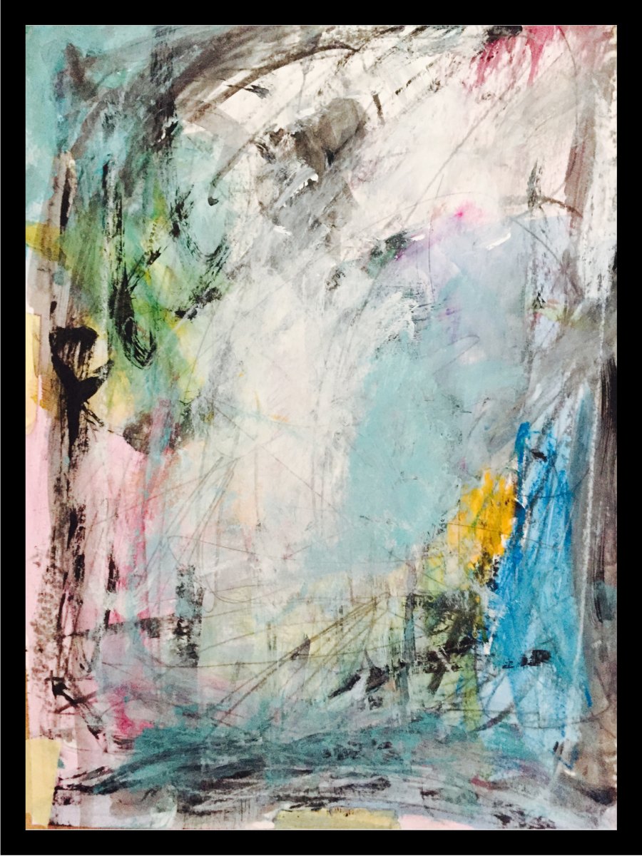 Mix medie malet med Akryl på kraftigt Akvarelpapir Incl Ramme